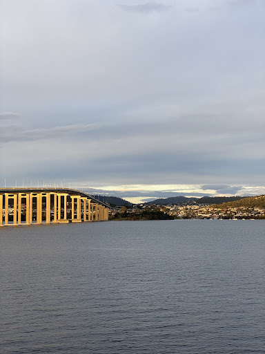 Read moreIt’s a bridge… spans the Derwent River from West to East and back again. The lane set up is unusual in that there are five lanes generally 3 for east bound traffic and two for those heading west. To accommodate the traffic flow of workers living on the eastern shore, as they travel into the city, the middle lane is changed to west bound just for the morning rush. The foot paths on each side a barely wide enough to ride a bike and have little to protect pedestrians and riders from the very strong winds and heavy rain that happens from time to time…...