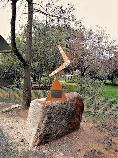 There were no midgets or dwarfs on top of this small mountain, but an iron spherical sculpture with interconnecting framed surface, supported on a stand of similar design with the name Wycheproof.