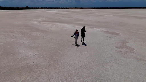 The landscape surrounding the lake is peaceful, and the reflective surface of the salt adds an ethereal quality to the area. For drone enthusiasts, this spot is a treasure â the aerial views of the lakeâs subtle hues and its contrast with the surrounding terrain are absolutely stunning.