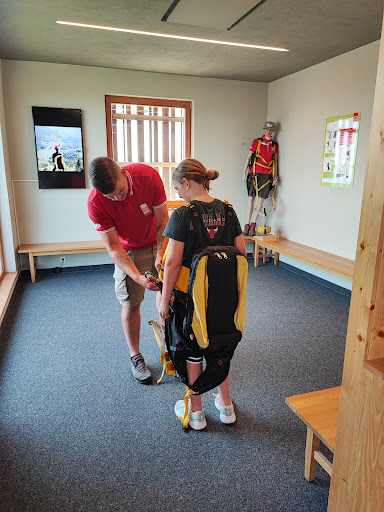 Read moreHaben das Ticket bereits am Vortag online gekauft. Konnten dann direkt mit dem Sessellift rauffahren (QR Code am Drehkreuz scannen) Beim Blick nach unten wird einem (wenn man Höhenangst hat) bewusst, dass es auf den Fotos eindeutig weniger hoch aussieht. Das erste Stück Berg beim Runterfahren der Zipline ist von oben dann doch viel steiler als gedacht. Und trotzdem kann ich es jedem raten sich zu überwinden. Es ging alles super schnell. 5 min anstellen, Anmeldung, dann bekommt man die Ausrüstung und schon hängt man oben drin. Man bekommt einen Rucksack wo man Handy, Brieftasche etc reintun kann. Allzu große Taschen oder so würde ich nicht mitnehmen. Und an die Damen: nehmt ein Haargummi mit. Ihr müsst die langen Haare zusammenbinden. Der Start war weniger schlimm als gedacht. Nach ein paar Sekunden erreicht man die Höchstgeschwindigkeit was ein kurzes Gefühl eines freien Falls mitsichbringt. Danach is man das steile Stück unten und kann den Flug genießen. Trotz Höhenangst null Probleme mit der Höhe gehabt. Der Wind bläst ziemlich um die Ohren, es rauscht, die Augen Tränen und man ist voller Adrenalin. Es war soo genial. Würde es sofort wieder machen. Leider zu schnell vorbei geweßen. (PS: ich bin generell ein Angsthase, fahre keine Achterbahnen etc. - aber...