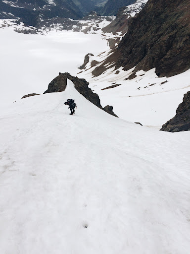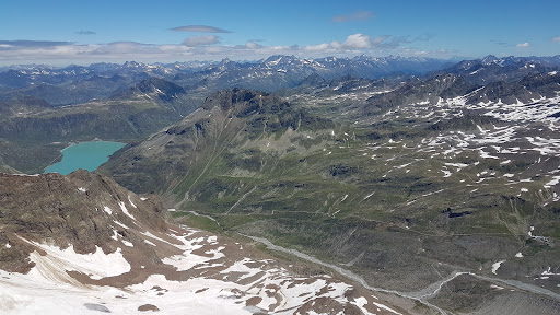 One of the main summits of Silvretta Group, at the border between Austria and Switzerland. Ascent from Silvretta Hut leads over Silvrettagletscher (flat, not too many crevasses, but nevertheless rope required) to a steep slee slope (danger of falling stones), and then over the rocky South ridge (I+) to the top....