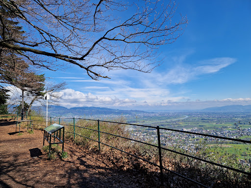 Den Rastplatz auf 667 m erreicht man nach 3,6 km. Von dort gibt es einen traumhaften Ausblick Richtung Unterland, bis zum Bodensee und darüber hinaus. Die durch den Steinbruch geschaffene Wand hinter dem Geländer fällt 250 m senkrecht ab! Danach geht es Richtung Nordwest wieder den Berg runter, am Anfang gemächlich, dann teilweise steil. Nach knapp 5 Kilometer erreicht man beim "Nellabürgle" - einem großen Brocken - auf 480 m die Forststraße. Rechter Hand gäbe es noch einen Aussichtspunkt beim Steinbruch Kadel . Nach 6 Kilometern erreicht man wieder...