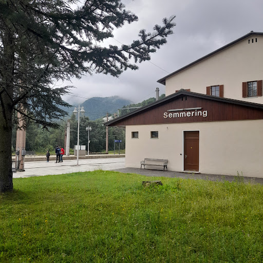 Questa stazione apicale della mitica ed ardita ferrovia del Semmering ( collega Vienna con il mare Adriatico, con Trieste e Venezia. La linea è inserita tra i siti patrimonio dell'umanità dell'Unesco) è posta a 896 m. s..m. . Non ha nulla che richiami la " belle epoque", anzi sembrerebbe abbandonata , se non ospitasse un piccolo ma interessantissimo museo, sulla storia di questa tratta conclusa nel 1854, precorritrice di tutte le ferrovie montane. Fuori si può ammirare un bel monumento ,tipo altare, dedicato a Carl Ghega, l'ingegnere visionario che convinse il Kaiser sulla sua fattibilità. Accanto c'è una "littorina" austriaca del dopoguerra . Alla fine del binario 1 c'è un piccolo fontanile , al quale accenna lo scrittore ceco Jaroslav Rudis , nel suo meraviglioso libro di emozioni ferroviarie " Trenomania". Io ci ho sostato il 27.VII.2025, una giornata piovigginosa, uggiosa, triste. Eppure quanti brividi di ammirazione ho avuto da questo sito ! Si intravedevano le ville e gli hotel dell'abitato , posto a 970 m. s.l.m. , sorte tra la fine del 1800 e inizi 1900, quando i viennesi l'affollavano, per bearsi delle vedute da sogno dai vari punti panoramici. Il più famoso è quello dei " 20 Schilling", in quanto riportato sulla banconota di 20 scellini, ormai fuori corso. Insomma Semmering merita una permanenza di diversi giorni, possibilmente senza Giove pluvio..... Enrico Alfonso...