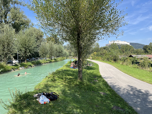 Read moreDer Almkanal ist an heißen Tagen ein Treffpunkt für junge Leute, aber auch ältere Menschen halten sich hier jung, da das Wasser mit 11-15° Grad doch sehr zapfig ist. Diejenigen die es schaffen, fühlen sich danach wach und frisch. Wer es mehr als ein paar Meter aushält, ist hart im nehmen oder merkt nichts mehr 🍾 😆. Schilder warnen übrigens vor kalten Temperaturen und starker Strömung, also nichts für Kreislaufschwache 😉. Ein Ausstieg ist immer wieder durch Treppchen möglich, die man anfänglich übersehen kann. Würden immer wieder vorbeischauen, wenn wir in...