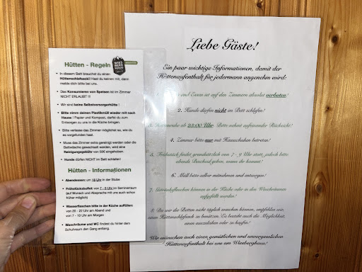 Read moreHatten leider das Pech, gleich mehrere Kinder/Jugendgruppen im Haus zu haben. Es war extrem wild, laut und anstrengend. Unsere Zimmertür der Honeymoonsuite wurde (vermutlich als lustige Mutprobe) mehrfach aufgerissen, dran getrommelt und dann kreischend weg gerannt etc. Zum Essen gab’s kinderkompatible Spaghetti Bolognese, die weder Röstaromen noch wirkliche Gewürze kennen gelernt hat. Als Nachtisch eine Schüssel einfache Schokocreme. Das Essen war nach den ganzen tollen Bewertungen hier dementsprechend extrem enttäuschend. Ansonsten gab es rund um die Hütte einige dubiose, sich selbst widersprechende Angaben: Wir haben extra die Honeymoonsuite gebucht, da diese angeblich frische Bettwäsche hat. Im Zimmer selbst hängt an der Wand ein Schild, dass ein Hüttenschlafsack empfohlen wird, da die Wäsche nicht gewechselt wird, auf dem Bett liegt ein Schild, dass ein Schlafsack absolut Pflicht sei. Essen gibt es je nach Schild um 18:00 Uhr oder 18:30, Hüttenruhe um 22:00 Uhr oder wahlweise um 23:00 Uhr. Wasserflaschen auffüllen kann man in der Küche oder den Waschräumen, in den Waschräumen steht aber, dass es kein Trinkwasser sei…. Duschen ist grundsätzlich erst nach drei Nächten und dann auch noch 5€ Kosten für drei Minuten möglich, was das Wohlbefinden nach einer anstrengenden Wandertour natürlich extrem schmälert und dementsprechend riecht es auch überall sehr streng. Zu zweit haben wir hier für eine einzige Übernachtung (inkl der traurigen Halbpension) weit über 200€ gezahlt und müssen leider sagen, dass es unsere mit Abstand unangenehmste...
