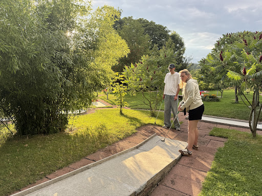 Der erste Eindruck war hier leider direkt unsympathisch. Keine nette Begrüßung, wortlos wurden uns das Minigolf-Equipment auf die Theke gelegt und ohne ein Wort abkassiert. Die Anlage an sich ist nett gelegen, sehr grün und idyllisch. Die Bahnen sind leider etwas schief, der Ball rollt gerne "selbständig". Bei uns ging es mehr um den Spaß, deshalb war es nicht ganz so sehr das Problem. Nach der Runde Minigolf hatten wir aber keine Lust dort noch etwas zu trinken, weil wie gesagt der Mann (Inhaber?) sehr unfreundlich war. War einmal ok, werden hier aber nicht...