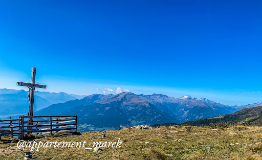 Hier sieht man den beiden Enden des Millstättersees und man kann unter dem Kreuz auf einer Bank die...