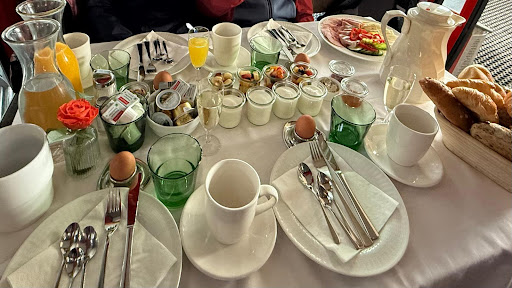 Das Gondelfrühstück war ein Traum! Ein tolles Team hat uns empfangen, dann wurde der gedeckte Tisch in die Gondel gestellt und wir durften Platz nehmen. Eine komplette Runde (Talstation, Mittelstation, Bergstation und wieder zurück - Dauer ca. eine Stunde) hat man Zeit um das liebevoll zubereitete Frühstück zu genießen. Kaffee, Prosecco (optional), Orangensaft, diverse Brötchen, Marmelade, Aufschnitt, Joghurt, Müsli, gekochtes Ei. Satt und total begeistert sind wir ausgestiegen, durften dann noch einmal nach ganz oben fahren. Wir haben dieses tolle Erlebnis mit einer Rund- und Talwanderung abgerundet. Absolut empfehlenswert - das Preis/ Leistungsverhältnis...