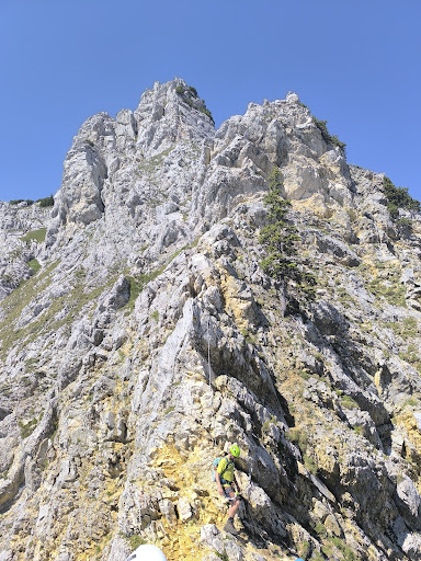 Read moreVerhältnismäßig einfacher und kurzer Klettersteig. Man kann den Steig grundsätzlich in beide Richtungen begehen, was auch aktiv gemacht wird, weshalb man je nach Uhrzeit und Jahreszeit mit Gegenverkehr konfrontiert wird. Der Klettersteig geht meines Wissens nach offiziell von Scharfschrofen bis zur Roten Flüh, wirklich geklettert wird aber eigentlich nur am Scharfschrofen. Die restliche Strecke geht dann ohne Sicherung. Rauf auf den Scharfschrofen ist der Klettersteig deutlich einfacher und eher von Schwierigkeit B. Hinab ist es an ein paar Stellen schwieriger, da es auch mannshohe Überhänge gibt, die einem die Sicht auf Tritte erschwert. Letztendlich aber auch einfach machbar. Die Kletterteil wird kaum mehr als eine...