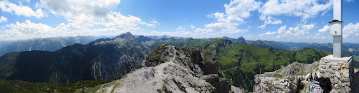 Read moreSchöner Gipfel, toller Rundumblick in Tannheimer Berge, Allgäuer und Ammergauer Alpen. Zum Schuss gekraxel an Ketten und ausgesetzt die letzten ca.100 Hm. Nichts für...