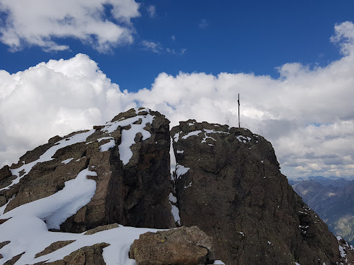 Read moreMit 3168m ist der Hohe Riffler der Höchste Berg der Verwallgruppe. Er ist in gut 2 Stunden von der Edmund Graf Hütte zu erreichen. Auf dem Gipfel hat man einen herrlichen Panoramarundblick. Das Gipfelkreuz ist von einem Felsspalt von dem Restgipfel getrennt und war in Reichweite aber nicht erreichbar. Das Gipfelbuch liegt allerdings auf der sicher zu erreichenden Seite. Bei Neuschnee/Schneematsch Anfang September 2021 gestaltete sich der Abstieg etwas schwieriger und zum Teil recht rutschig. Alles in allem ein "relativ" einfacher 3000er, den man bei einem Besuch auf der Edmund Graf Hütte mal eben...