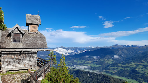 To access this hidden treasure you have to take the panoramastrasse up from Gröbming by car (a long and twisting but scenic road, which is free with the Sommercard or otherwise costs EUR 15). If you park the car on the top (you can drive up to as high as 1700m asl), the chapel is a short and easy walk - around 20 minutes one way.