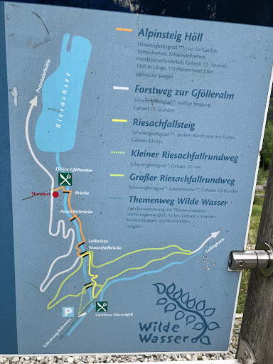 Read moreIncredible beautiful place near by Schladming (you need to pay toll when you enter the nature park), especially breathtaking views, when you chose to follow the orange path, next to the waterfall up! Many hanging bridges, narrow paths, requires good medium level hiking experience! Upper lake is wonderful! It is worth to eat soups and wienerschnitzel at the restaurant (Gesthaus Riesachfall) and try the delicious ice...