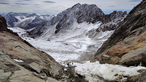 Read moreAufstieg um halb 5 morgens (Stirnlampe). Kurzes Frühstück in der Breslauer Hütte dann weiter über ein langgezogenes Geröllfeld mit Aussicht auf die umliegenden Gletscher. Nun wurde es steiler und wir kamen in den ersten Schnee bzw. Eis. Also Steigeisen an und weiter bis zur ersten Kletterpassage. Diese ist nicht sehr anspruchsvoll und relativ schnell überwunden. Jetzt erst steht man am eigentlichen Fuße des Gletschers also Ausrüstung heraus und anseilen. Das Wetter war zwar relativ schön, doch die Höhe (Kälte), der starke Wind und der aufgerwirbelte Schnee machte die Überquerung des Gletscherfelds doch "interessant". Nach dem Feld steht man vor dem Endspurt, die letzten Höhenmeter bis zum Gipfelkreuz. Dann ist es geschafft. Gipfelschnaps und Fotos 😄 ca 12 Uhr. Fazit: viele Höhenmeter aber einer...