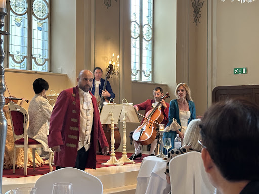 Read moreWe thoroughly enjoyed our Mozart dinner concert in July of 2022. The room is very intimate so if you opt for one of the lesser expensive seating options I think you will enjoy the performance just as much as those who pay for the higher tier seating. That being said, had a family of 6 (children ages 13-20) and did pay for seating closer to the stage. For those of you with younger children, I would say that the family with the front-row seating had a toddler with them. While there were moments when the toddler was a slight distraction to us the performers were very professional and did not skip a beat. I would encourage you to bring your toddlers and experience the blessing of Mozart and these fantastic musicians and vocalists. The food served was good...I think the price-quality was reasonable. There is the opportunity to order additional bottles of wine and the servers were very responsive related to this. The music selections were great and some of the most popular Mozart pieces...which were a real treat. The sequence was that the performers (musicians and vocalist) performed 3-4 times throughout the evening...so things were broken up between dinner courses. As a side note, I noticed that there seemed to be an exclusive experience/option alongside the regular dinner performance we enjoyed. There was a separate room from the main dining/performance program where people were enjoying an exclusive interaction with the artists. I'm not sure if the artists were performing but it appeared that the clientele were Austrian locals. Not sure how to enjoy this or what it includes but there appears to be an even more intimate...