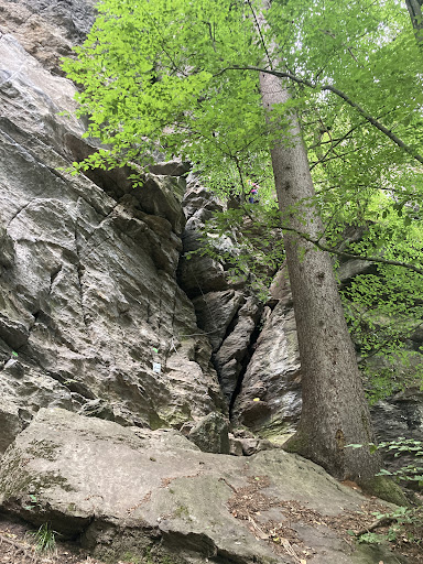Wij deden vorige week 5 ferrata's in Slovenië en misschien zijn we daardoor wat verwend maar deze vonden we geen topper. Al zien we er wel de kracht en de veelzijdigheid van in. Vermits het onze laatste dag vakantie is en slechts een tussenstop in de rit naar huis deden we "maar" 2 sporen. De Nr 3 en de Nr 6 (rode route). Voor de Nr3 hadden we welgeteld 8 minuten nodig om van de start tot boven te raken. Maar we wilden deze zeker doen omdat hij over de brug ging. De Nr 6 duurde iets langer maar ging toch ook redelijk vlot. Over gans de wand zit je redelijk ingesloten door de bomen. Het is pas bijna op het einde dat je een beetje uitzicht krijgt. En dat vinden wij heel jammer. Wat wij zeker leuk vonden is het feit dat je hier wel voor iedereen wat wils hebt. Ben je nieuw in het via ferrata wereldje? Dan zijn er wat oefenstenen. En moet je nog wat wennen aan hoogtes als je dit doet? Dan is dit ook de perfecte plek voor jou. Eens je op de wand bent kan je vlot van het ene naar het andere spoor overschakelen. Heel de wand vonden wij zeer veilig afgewerkt. Zeer veel ijzeren ankers en eens boven is alles goed afgespannen. Beneden staat er zelfs een box met een first aid kit in!!! Aangenaam verrast ook dat er parking is voorzien speciaal voor mensen dat hier komen klimmen.