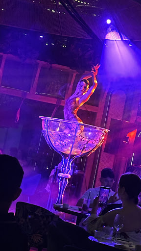 Erst mal unser Kellner slobo war mega Nett, aufmerksam, sehr bemüht und sehr professionell! (Der sollte eine Gehaltserhöhung bekommen plus die Acts. Das Ambiente einfach nur schön, schick Luxuriös und schön perfekt. Man taucht in eine magischen Welt ein, zwischen Burlesque und sinnlicher Zirkus Akrobatik.