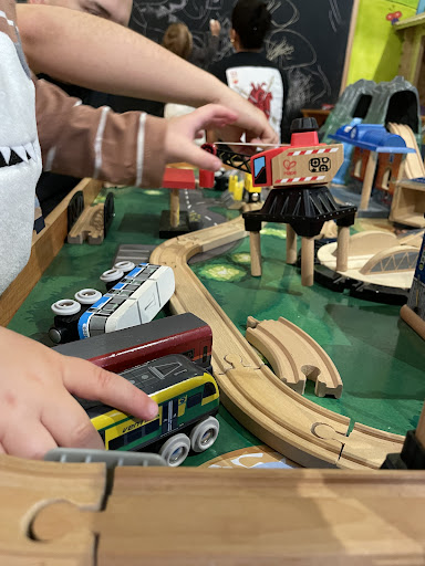 Für viele Kids sind die Zugspielsachen und die Playmobiltische ein richtiges Highlight. Da vertiefen sie sich in richtige Spiellandschaften und es ist toll zuzusehen dabei. Oder auch selbst mitzuspielen :)