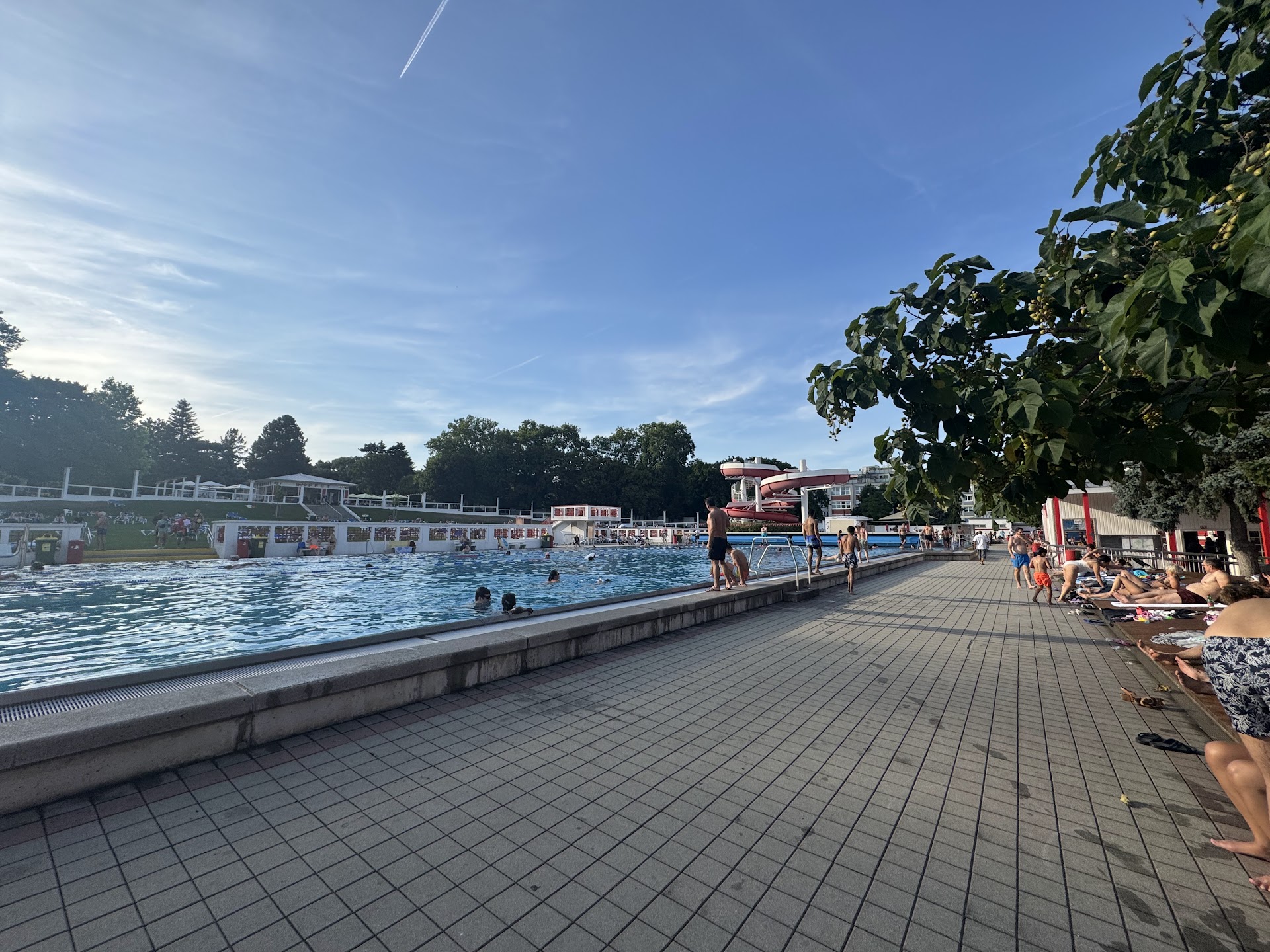 Read moreMeiner Meinung nach wird das Kongressbad anhand der aktuellen Bewertungen eindeutig überbewertet! Kritikpunkte: Es gibt für 600 Frauenkästchen exakt 1 (!) Umkleidekabine, die naturgemäß fast ständig belegt ist und viele "Damen" dazu verleitet sich quasi "öffentlich" im Bereich der Kästchen nackt aus- und umzuziehen - Beileibe kein schöner Anblick (in vielen Fällen und nichts was man sich unbedingt gönnen muss). Bei den Herren gibt es - soweit ich das beurteilen kann hingegen in jedem Kästchenabschnitt eine Umkleidekabine !!! Es gibt ein "Sportbecken", das an sich erfreulicherweise auch nicht ganz winzig ist - allerdings ist sportliches Schwimmen hier auch kaum möglich, da es bei Temperaturen über 30°Celsius immer noch auf 27 Grad aufgeheizt wird und somit kaum Abkühlung bietet und für sportliches Schwimmen nicht unbedingt motiviert. Paradoxerweise ist es das wärmste Becken im gesamten Bad. Sowohl das Nichtschwimmerbecken als auch das Kinderbecken sind deutlich kühler, was vor allem Eltern mit Kleinkindern dazu motiviert mit ihren Babies und Schwimmflügel tragenden Kindern das Sportbecken zu blockieren. Vielleicht muss man dann aber auch gerade wegen der vielen Kleinkindern (die vermutlich nahezu alle freudig ins Wasser pinkeln) gar nicht mehr sooooo viel Heizen :-(. Ich bin sicher keine Kinderhasserin aber angesichts des großzügig angelegten Nichtschwimmerbereiches und des zusätzlichen Kinderbeckens sehe ich nicht ein, dass sportlich orientierte Vollzahler (= Erwachsene) scheinbar hier keine Existenzberechtigung zu haben scheinen :-(