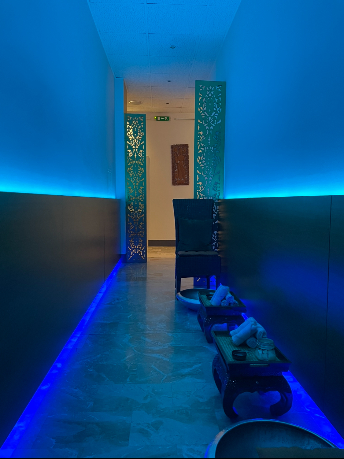 They take your shoes and socks first, give you slippers, and give you a traditional Thai foot bath. Next I was taken to my treatment room where I changed into a robe. I had half an hour in the Tepidarium first, where they offered tea, water, or juice before leaving me to relax. Next I had an hour full body massage, which really worked wonders on my neck and lower back pain. After the massage I was sent to the garden area for fruit and tea, which really helped smooth my post-massage transition back to reality.