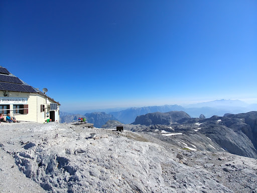 Read moreGrundsätzlich eine tolle Hütte, um Touren wie den Königsjodler Klettersteig auch auf 2 Tage gehen zu können. Die Verhältnisse oben sind sehr einfach - Plumpsklo, Regenwasser aus Kanistern zum Waschen und Zähneputzen, relativ stark rationiertes Frühstück (2 Scheiben Brot mit Butter oder Marmelade, alternativ dazu Müsli), Schlafen in Betten- oder Matratzenlager - Luxus braucht man also nicht erwarten, ist aber auch logisch und gerechtfertigt bei der ausgesetzten Lage. Abendessen wurde sehr schnell serviert, Auswahl war zwar begrenzt, das Personal an Kellnern war aber sehr freundlich und gut organisiert. Soweit war der Aufenthalt eine wirklich super Sache, wäre da nicht der extrem unfreundliche Hüttenwirt. Wenn ich eine ca. 8-stündige Bergtour hinter mir habe und in die Hütte komme, erwarte ich mir freundlich oder zumindest mit einem normalen Umgangston begrüßt zu werden - stattdessen wurde ich, sobald ich die Türe zur Gaststube öffnete, sehr unfreundlich angefahren, dass ich meinen Rucksack gefälligst im Tockenraum (oder sowas) ablegen sollte. Der Wirt wusste noch nicht einmal was ich brauchte, ob ich überhaupt in die Gaststube wollte (ich wollte eigentlich bzgl. meiner Reservierung fragen, eh Dinge klären wo ich schlafen würde usw). Mein Kollege, der kurz vor mit hinaufschaute (ich ging vorher noch auf die Toilette) wurde genauso unfreundlich empfangen. Traurig dass auf einer grundsätzlich tollen Hütte so forsch empfangen wird, hätte ich nicht reserviert und Anzahlung geleistet und eine Übernachtung fix eingeplant wäre ich wahrscheinlich gegangen. Auch gegenüber anderen Gästen verhielt er sich unfreundlich - einer ausländischen Frau (vermutlich tschechisch, kann ich aber nicht sicher sagen) drohte er kurz nach meiner unfreundlichen Begrüßung sogar mit der Polizei. Ich weiß nicht was genau vorgefallen war und wie der gute Mann die Polizei auf fast 3000 Metern Höhe in absehbarer Zeit herbringen wollte, ich vermute sie wollte übernachten und hatte nicht reserviert. Die Frau verhielt sich aber im Gegensatz zum Wirten ruhig und sachlich, und in unserem Zimmer des Bettenlagers wären an dem Tag sowieso noch 2 Betten freigewesen. Die Details kenne ich aber wie gesagt nicht, ich habe den Vorfall nur wie beschrieben wahrgenommen. Ich hoffe dass bald ein anderer Pächter kommt, der weiß was Gastfreundlichkeit und normaler Umgangston sind, bis dahin leider nur 2/5...