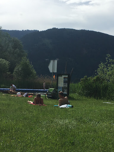 Eintritt frei! Free entrance, free car park, free beach volley ball courts (x2) sports field and toilets (well cleaned) and a really good cafe/restaurant to keep you refreshed. Get down there its fun! The Gemeinde should be proud of such a good free facility on such a beautiful lake. The views out in the lake while swimming are perfect.The water is really warm from the end of June to well...