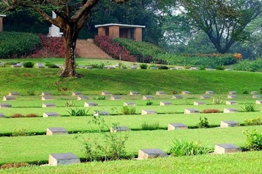 In the graveyard some of 738 soldiers who were dignified from general soldier to Brigadier and died after being wounded in the World War II had been buried here. An arcade in the entrance of the tomb, in which the walls and walls of this cemetery have a wall plaque inserted in history and story written in English and Bengali. Inside the straight path in front, on which there is a burial rope on the rows. According to the religion of the soldiers, their grave can be seen in the name plate, death date, posthumous and religious symbol as well - crossing the grave of Christians, Arabic writing on the grave of Muslims is notable. There is an elevated staircase on the right side of the pedestal, crossing the holy symbol of Christendom. There are two more arcades on the side of the altar. These arcades can be made to the backside of the cemetery. There are also many grave slabs there. Each flower grape is decorating in between the two grave pockets. There are lots of trees in the entire cemetery. There is an exceptional grave beside the wide side of the front of the cemetery, where the place is surrounded by a place with 23 grave slabs. This place was originally a Massacre of 23 Airplane, with the words.