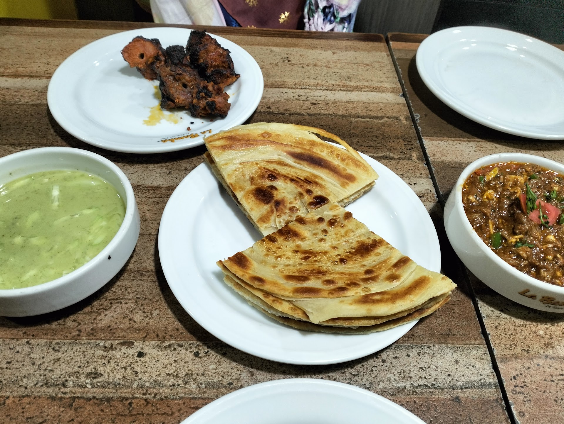 Read moreChicken tikka's smell & taste were crazily awesome. The plain paratha was like a normal paratha. The chicken tikka was properly done both outside and inside. Some cucumber pieces and raita were served with it.