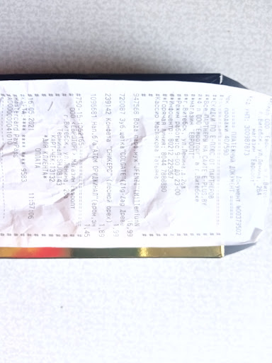 Read moreНемного оклемавшись после отравления, решила всё таки написать отзыв о вашем магазине! Была в командировке в Витебске, жила в гостинице "Витебск" и естественно вечером перед отъездом зашла в "Евроопт" за продуктами на ужин и в дорогу. Магазин большой, ассортимент разнообразных - на этом плюсы закончились:((( Расположение товара неудобное, продавца в кулинарном отделе ждали минут 10, работало от силы кассы 4, от этого очень большие очереди! Теперь о главном! Передо мной мужчина брал суши и я решила тоже взять их на ужин! Вернулась в гостиницу, поела и легла спать. Как вы уже можете догадаться, ночь моя прошла в аду:((( Сильнейшее отравление, полное обезвоживание с потерей сознания... В гостинице, одна в номере, перед дорогой - то что надо!!!!!:(((( Выражаю огромную "благодарность" магазину Евроопт за причинённый вред здоровью, испорченное впечатления от Витебска и за потерянные деньги, так как всё, что было куплено в дорогу,...