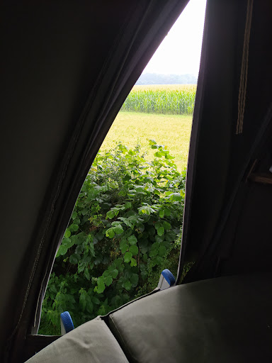 Read moreLeuk concept, (misschien iets te primitief) Propere, ruime tent, inclusief organisatiebankje. Slechte matras (veel te dun), gedoe met het stromend water bij de lavabo, geen beschutting tegen de regen (het zeil dat over de picknicktafel hing, werd weggehaald). Zeer onhandig om de auto uit te laden (wij kwamen toe na 17u, misschien dat je vóór 17u wel kan oprijden, dat vergaten we te vragen) De ladder kregen we niet echt deftig geplaatst om echt stabiel te staan, ons bevriend koppel wel. Alles hield in elk geval wel goed stand tijdens het onweer. Ik zou 3,5 sterren geven ipv 3, maar dat is...