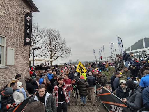 Je ziet de renners al van ver afkomen. En hoewel de koers al gemaakt was op de Paterberg, zie je duidelijk dat de voorsprong van Wout Van Aert en Christophe Laporte steeds groter wordt op het peleton. De renners zitten erg verpreid en door hun gezapige tempo opwaarts kan je iedereen mooi van elkaar onderscheiden. Het grote voordeel aan deze locatie is dat er weinig volk staat, waardoor je nog meer kan genieten van het wielergebeuren en de rust van de...