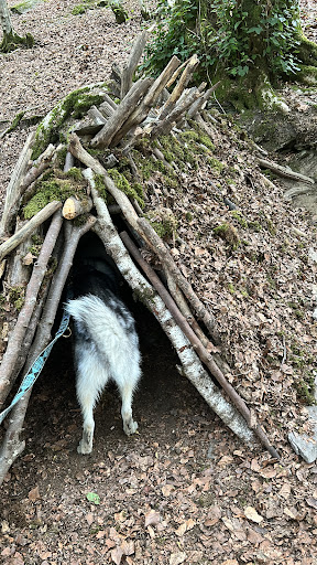 Parkeer de auto naast het kerkje aan het water en loop langs het kerkje naar de kruising. Hier zie je op het stoepje een bordje met de verschillende kleuren van de routes die rechtsaf beginnen. De gele route is ongeveer 4.5-5km en kan met de hond gelopen worden maar je hond (en jij) moeten wel echt behendig zijn. Veel smalle paden en steile hellingen omhoog en omlaag. Zeker uitdagend en heel leuk om met...