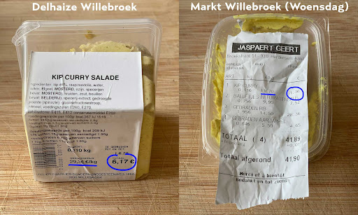 Read moreKip Curry - If you plan to buy Kip Curry (Chicken Curry) in Delhaize Willebroek, you better wait and buy it at the public Market on Wednesdays as your patience will be rewarded with 3 Kip Curry quantities (public Market Willebroek) instead of 1 Kip Curry quantity (Delhaize Willebroek) for the same price. The price per kg in Delhaize is 3 times more than on the weekly public Market: 29,38 âŹ/kg instead of 11,70 âŹ/kg. The only possible explanation I have for this price difference is that the Kippen (chickens) in this product from Delhaize probably came from American in price surged eggs or it's just plain greed! By the way, the Kip Curry from the Market in Willebroek was much tastier than the rather dry Kip Curry from Delhaize. Enjoy your meal! TRNSL: Kip Curry - Als je van plan bent Kip Curry te kopen bij Delhaize Willebroek, kunt u beter wachten om het op woensdag op de Markt te kopen in Willebroek. Uw geduld wordt dan beloond met 3 porties Kip Curry (Openbare Markt Willebroek) i.p.v. 1 portie Kip Curry (Delhaize Willebroek) voor dezelfde prijs. De prijs per kg bij Delhaize is 3 keer hoger dan op de wekelijkse Markt: ⏠29,38/kg in plaats van ⏠11,70/kg. De enige mogelijke verklaring die ik voor dit prijsverschil heb is dat de kippen in dit product van Delhaize waarschijnlijk afkomstig zijn van de in prijs gestegen Amerikaanse eieren, of dat het gewoon pure hebzucht is! Kip Curry van de Markt van Willebroek was trouwens veel lekkerder dan de zeer droge Kip Curry uit...