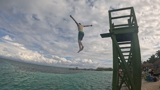The Split is THE spot to hang out and party like it’s spring break all summer long. It can be a lot of fun and it's worth checking out at least once when you're on Caye Caulker. I'm not saying you shouldn't go there, but keep in mind, the food and drinks are priced a lot higher here than most of the island. My fiancé and I got a drink here, but we ate at other restaurants nearby for half the cost. There also weren't many people here when we were visiting. Maybe with more people it would be more fun. We ended up liking the bar next door a lot more because it's a similar vibe but fairly priced and locally owned. Regardless of food and beverage, The Split has its perks – music, a high platform to jump off of, and tables in the water. Great spot to people watch, and you’ll see a lot of boats...