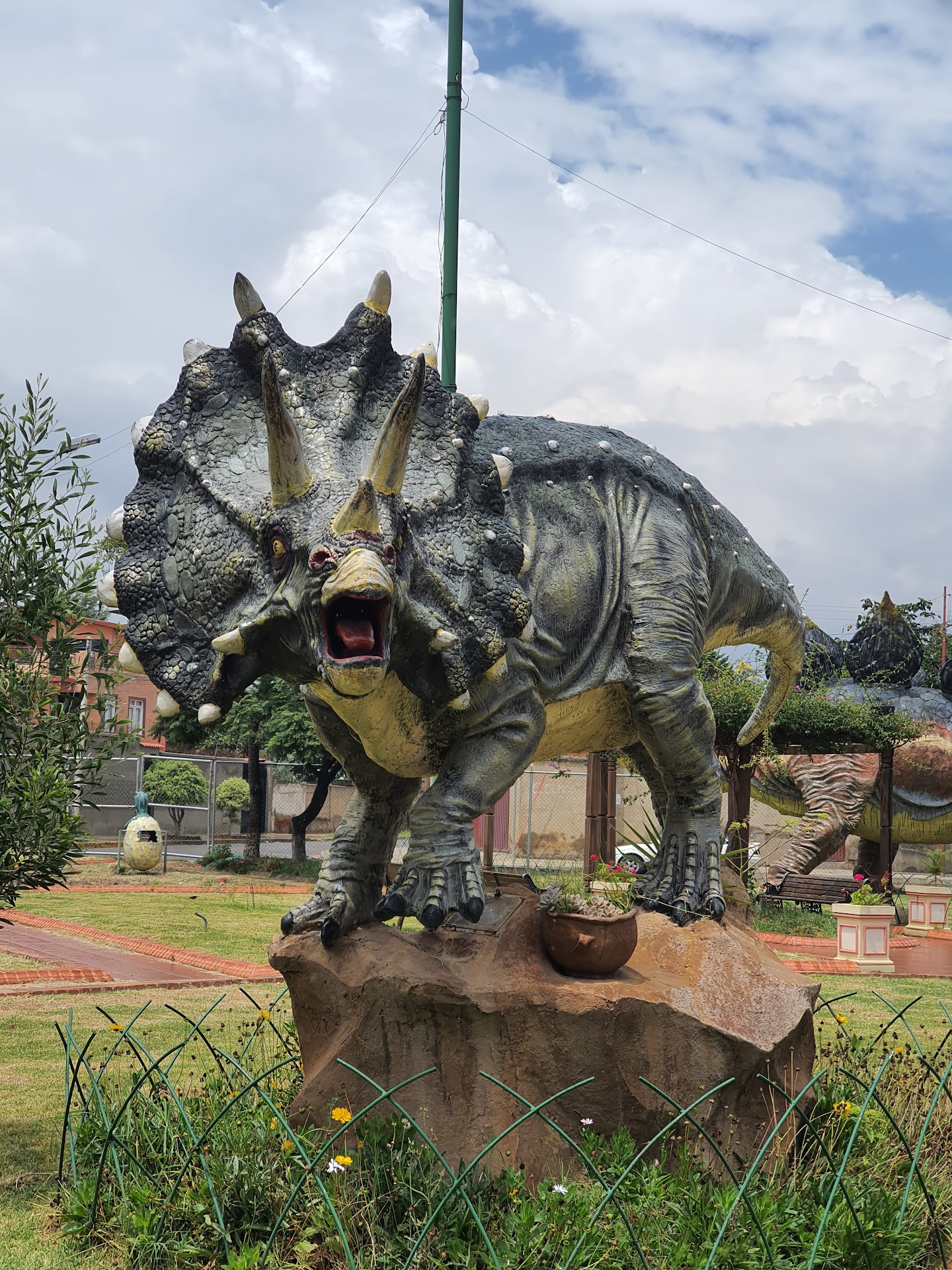 El parque esta muy bonito y los dinosaurios estan muy bien logrados lo que lo hace muy atractivo para los niños. Jardines bien cuidados y con muchos arboles. Aunque hay que mejorar el mantenimiento como en las rejas de los jardines que estan rotas en algunos sectores y con los fierros expuestos. En el tobogan 2 cosas por corregir: en el 1er nivel hay una baliza eléctrica con cables,que debería estar por fuera o bien cubierta para que no este al alcance de los niños y en el último nivel hay un depósito de agua que ha perdido su tapa y cualquier niño puede caer. Fuera de esos detalles el parque esta bastante bien en...