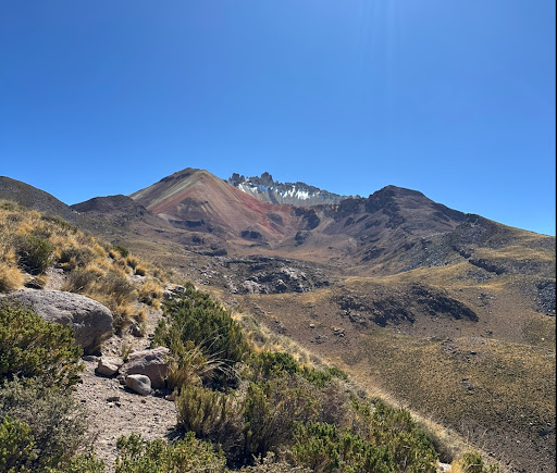 Such an incredible place. A beautiful volcano that has a ridge that is multicoloured, almost like a “rainbow mountain” and a series of jagged outcrops near the top that look like teeth lining the rim! The view from higher up of the surrounding salt flats is incredible too. A local guide is required to go beyond the second lookout (which isn’t very high up ), and costs 500 Bolivianos per group. Need to leave by 10am otherwise there’s not enough time to get to the top! The first half of the trail is a dirt track with a gentle incline, but then it becomes a bit steeper with...