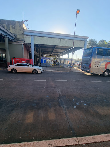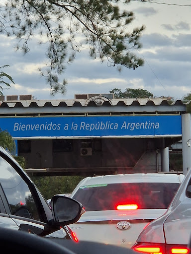 Border crossing from Argentina to Brazil. You take the bus from the bus station (costs 7k. ARS) bus stops and the Argentinian border control for you to register your exit. When you get out, most probably your bus will be gone,so you wait for another. Then the next bus drops you at Brazilian immigration. Once you officially enter the country, find a bus stop and wait for the next bus. Waiting time can be 40-50minutes. Keep the hold of the tickets...