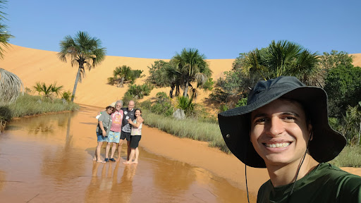 Fizemos um roteiro de 5 dias em agosto com o guia Eduardo (o Du), que é simplesmente sensacional: carismático, simpático e com mais de 8 anos de experiência no Jalapão. Ele nos transmitiu muita segurança em todos os momentos — algo essencial, já que os trajetos só podem ser feitos em carros 4x4 e alguns trechos são realmente desafiadores. Além disso, o cuidado dele com o conforto e bem-estar de todos do grupo (éramos eu, meu marido e mais três pessoas) fez toda a diferença.