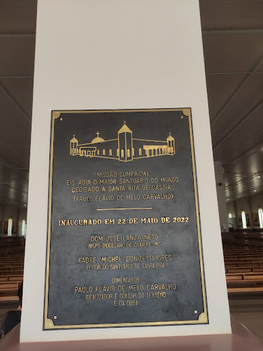 Lugar incrível, que transmite paz, o turismo religioso principalmente vem crescendo ano a ano, a cidade está começando a se preparar, em dias com eventos é bem difícil conseguir vagas nos hotéis, que são poucos, é mais seguro tentar com bastante antecedência, vale super a pena conhecer o santuário, a estrutura física é imensa, se o santuário estiver cheio a praça de alimentação provavelmente não dará conta de atender todo mundo, tudo muito limpo e bem cuidado, banheiros impecáveis, possui um jardim lindo, tudo muito bem cuidado e harmonioso, o estacionamento é gigantesco ( o valor para motos foi de 12 reais) mas é pago lá dentro, o que fica um pouco confuso, pra saber onde se realiza o pagamento pra quem vai pela primeira vez, se fosse direto na entrada creio que seria melhor, o santuário é de muito fácil acesso, mas não é dentro da cidade, para deslocamento a pé fica um pouquinho mais difícil, pra pessoas com dificuldades de locomoção tem que ir de carro, é tudo muito bem sinalizado, não tem erro, tem várias lojinhas e lanchonetes no complexo, mas em dias lotados vai ter fila kkk O padre é incrível, muito carismático. No exterior não possuí uma arquitetura tão complexa, mas é gigantesca, e por dentro é algo de espantar pelo tamanho, e quantidade de bancos, o som da até eco kkk experiência incrível, para agradecer e pedir as bênçãos de Santa Rita de Cássia. Possuí uma réplica da casinha de Santa Rita no complexo também, que vale super a pena...