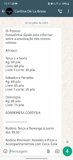 Restaurante La Brasa R$79,90 por pessoa, rodízio de pizza, churrasco, sushi na ilha e Coca-Cola a vontade. De terça á domingo a partir dás 19h30