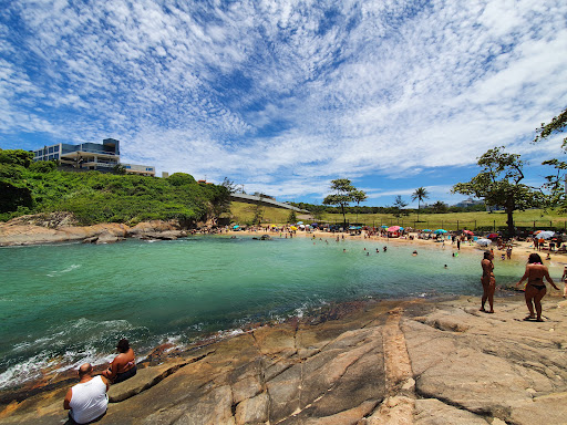 Read moreQue praia! Que lugar! Pra quem nunca foi, é uma otima experiência, tem sombra de árvores, a cor da agua é linda, a praia é bem pequena e no costão tem uma pequena piscina natural. Do costão da pra observar toda a praia e caminhar talvez uns 300 metros. Das poucas vezes que fui, a agua tinha bastante algas, mas é bem próximo a areia, na altura das coxas ja não tem tantas. O preço do milho e refrigerante é um pouco acima doque em outras praias (praia da costa por ex) mas o sorvete, água e churros acaba sendo o mesmo. Falando em churros, na entrada da praia, tem um maravilhoso, acho que foi o melhor que ja comi. Não tem estacionamento próximo a praia, mas sempre encontrei vaga próximo a entrada. O bairro é bom, ngm nunca mexeu no carro. Fique com...
