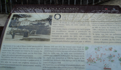 O complexo arquitetônico do Convento e Igreja de Nossa Senhora do Monte Carmo foi construído pela ordem dos Carmelitas Calçados, que chegou ao Espírito Santo por volta de 1675, nessa época, duas outras ordens religiosas, a dos jesuítas e a dos franciscanos já haviam se instalado na região e construído suas Igrejas, São Thiago e São Francisco, respectivamente. No caso dos carmelitas, o lugar escolhido para a construção da Igreja ficava numa parte mais baixa que as outras duas, bem próximo à encosta do maciço central que protegia o fundo da ilha, o ano de sua construção é 1682 e originalmente era um complexo que englobava o Convento, a Igreja de Nossa Senhora do Monte Carmo e a Capela da Ordem Terceira, todos em estilo colonial com linhas barrocas, mas devido à modernização da capital no início do Século XX, em 1910 foi realizada uma grande reforma e o prédio do Convento ganha um novo andar e posteriormente, em 1913 a fachada recebe os traços neogóticos que até hoje permanecem. Segundo a história, quando Dom Pedro II realizou uma viagem ao Espírito Santo em 1960, escreveu no diário da viagem que de todas as capelas da Província que ele visitara, a Igreja e Convento do Carmo era a...