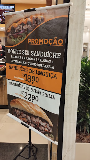 A primeira impressão (pegar no cardápio) já foi ruim, porque ele estava engordurado. Foi o primeiro sinal para eu procurar outro restaurante, mas insisti. O cardápio diz que para montar seu sanduíche, você vai escolher 2 molhos + 3 "saladas" + batata palha e queijo muçarela. Mas, na verdade, são 2 molhos + 3 acompanhamentos escolhidos entre alface, tomate, cenoura (as "saladas"), queijo e batata palha. Ou seja, se você quiser o queijo e a batata, resta apenas 1 opção de salada para escolher. Ou seja, o cardápio está errado e é enganoso. Decidi pedir assim mesmo. Me deram um papel tosco, recortado na régua. Bom, isso seria apenas um "detalhe" se tudo o mais estivesse ok. Mas contribuiu para reforçar a impressão da experiência ruim. No final, veio um sanduíche quem nem de longe se parece com o da foto do cartaz. Infelizmente, não tirei foto. Mas pense em um sanduíche do Subway, só que muito pior: pouco recheio, mal montado, com os recheios fora do pão. E o sanduíche, que era de fraldinha, veio com uns pedaços que não sei definir o que é. Uma espécie de "sebo", umas partes que até parecia gordura, mas tinham uma textura estranha e fibrosa, ruim demais. Foi o que fotografei ao final. Diria que 1/3 do que deveria ser carne era isso.