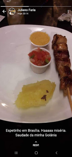 O que foi lamentável foi o tratamento com relação ao espeto de contra filé. Minha esposa não conseguiu comer nenhum, pois, de acordo com ela, todos estavam só o nervo. Ela tentava mastigar mas estavam duros. Só nervos mesmo. Ela separou, mostrou pro pessoal de lá que orientaram a falar com a responsável , que acho que era a caixa , a qual disse de forma debochada e desrespeitosa foi que , "já tinham servido mas de 50 espetos daquele e nenhum cliente reclamou". Em outras palavras, a falta de sorte foi totalmente nossa, por não ter pego um espeto passível de ser comido.