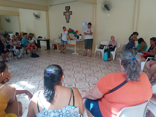 A casa paroquial também é bem simples, mas grande o suficiente para abrigar a nova fraternidade. Cheia de escadas, como convém a um terreno no morro. Há ainda um pequeno salão paroquial e outras dependências menores, inclusive um terreno para horta e alguma árvore frutífera. O campo de evangelização na Rocinha é imenso, tem 43 pastorais diferentes. Só na catequese, 900 crianças se preparam para a Primeira Eucaristia. São celebradas oito missas nos finais de semana. A Paróquia tem 8 comunidades eclesiais, com celebração dominical dos Ministros e missa uma...