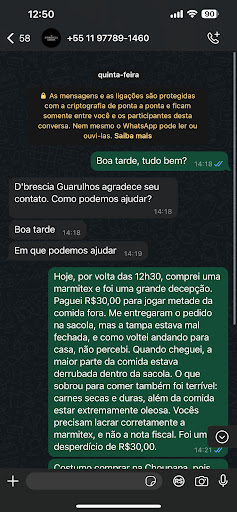 O agravante da situação foi a recusa do gerente em fornecer o próprio nome. Mesmo após solicitar essa informação diversas vezes, ele deliberadamente evitou se identificar, o que aumenta ainda mais minha indignação e desconfiança em relação à postura adotada.