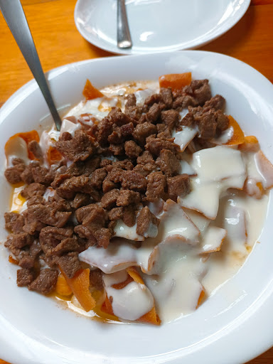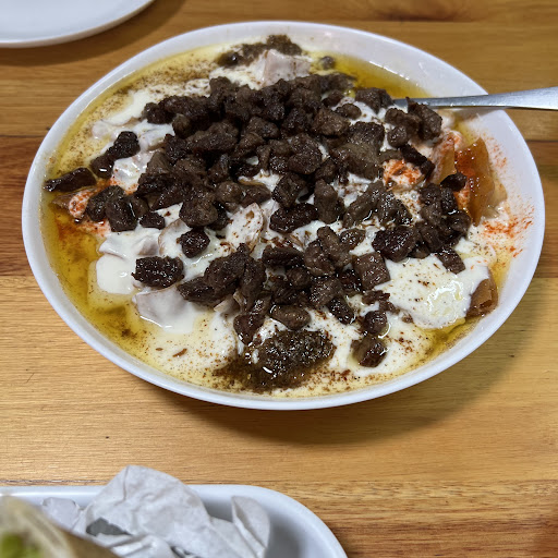 Box 74: é o meu favorito dos três. Ficam no meio do mercado, contam com um atendimento ríspido e de poucos amigos e preparam algumas iguarias difíceis de achar fora de lá. Recomendo o kaake assrouniye de entrada, um pão típico do Líbano recheado com akkawi, um queijo de leite de vaca originário de Israel. Ao seu lado, as man’oushes são esfihas libanesas e podemos pedi-las em diversos sabores. Já comi e indico a de akkawi, a de carne e há sabores diferentes, como kecheck (mistura fermentada de trigo e iogurte de sabor ácido, salgado e intenso), kawarma (carneiro ou cordeiro confinados) e sujok (espécie de linguiça seca e picante de origem armênia).