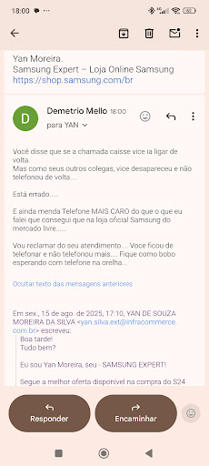 Boa tarde, Quero expressar a minha frustação quanto ao atendimento que recebi na data de hoje 28/01, na unidade da Samsung localizada no shopping São Caetano do Sul. Estive na loja para efetuar a troca de um produto adquirido na data de 27/01, porém não tive êxito quanto a solução. Houve um desencontro na informação entre cliente e vendedor quanto ao case do meu telefone, onde o vendedor da loja foi extremamente mal educado, dizendo a minha pessoa que o erro não foi dele e sim meu. Eu como cliente não tenho a obrigação e conhecimento suficiente para identificar qual modelo correto seria o meu produto. O mínimo que espero de alguém que trabalha com vendas, seja educado, transparente e com capacidade técnica para identificar o produto que melhor se adeque a minha necessidade, ele está ali para prestar quaisquer esclarecimentos. Fiquei por cerca de aproximadamente 60 minutos no estabelecimento para que o cancelamento e o estorno fosse realizado em meu cartão de crédito e novamente a experiência foi traumática, pois nenhum dos profissionais conseguiram efetuar a resolução do meu problema. Alegaram que este tipo de transação deveria ser feito diretamente pelo gerente da unidade, o qual não se encontrava no estabelecimento e o único direcionamento que foi dado, “volte no dia seguinte” pois o gerente estará presente e tentará resolver o seu problema. Não somente a minha pessoa, mas todos os meus familiares são fãs incondicionais da marca, após a data de hoje 28/01 a nossa experiência foi negativa e traumática, a ponto de repensáramos a continuidade na utilização dos produtos da...
