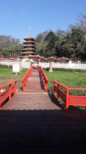 A torre de Miroku, uma réplica do Templo Horyu Ji, em Nara, Japão, fica a menos de 20 km de São Paulo (marco zero), em Ribeirão Pires, beirando a represa Billings e, só é possível chegar por barco, que sai da marina Tahiti Náutica Club (Estacionamento 15 paus e translado + visita a 40 pilas - Segunda a domingo das 09:00 ás 17:00). Para chegar até a marina onde pegamos o barco é bastante fácil, só seguir o GPS, pela rodovia Indio Tibiriça sentido Anchieta/São Paulo na altura do 41,5 km. O Koryu, é uma balsa temática, com uma imponente figura dourada à proa, que nos conduz da marina à torre, onde tudo é muito organizado desde o embarque, ao passeio pela represa Billings até o desembarque. Ao chegar na Torre um guia local recepciona os visitantes e conta um pouco a história do local e em seguida ele leva os visitantes até a torre onde não é possível tirar fotos de dentro do templo, apenas da área externa. Após isso, há uma curta celebração, mas que podemos aproveitar muito para nos conectar com a natureza e com a paz do local. A torre tem 7 andares e 32 m de altura e no seu interior, encontra-se a imagem de Hinode Kannon esculpida em madeira e folheada a ouro, com estatura de 5,67 metros, totalizando 8 metros junto com sua base. É uma das manifestações de Kannon (Avalokitsevara, na Índia; Cherenzig, no Tibete; Kuan yin, na China), uma divindade tanto masculina quanto feminina que, ao observar todas as leis regentes do Universo, salva livremente os povos. Dessa forma, quando seu nome é chamado, vem imediatamente em socorro daquele que o pronunciou e, dependendo do pedido que lhe foi solicitado, manifesta-se sob diferentes formas, sempre pronta a responder, de imediato, às necessidades do ser humano, a qualquer momento, em qualquer parte do mundo. O santuário xintoísta do Complexo da Torre de Miroku, construído de 2000 a 2014, reúne representações de divindades orientais e ocidentais que promovem a salvação da humanidade por meio do amor, da compaixão e da união. A visitação, bem como, fotografias e vídeos são permitidos apenas em áreas abertas e exclusivamente para o registro comum de um passeio, nunca para divulgação comercial ou promocional, pois as obras possuem direitos autorais. O consumo de bebidas (apenas não alcoólicas) e alimentos deve ser feito exclusivamente na recepção do píer. No espaço há uma pequena área de conveniência na qual estão disponíveis banchá (cortesia), café, sucos, biscoitos japoneses, oniguiri e dorayaki. É proibido fumar nas adjacências do complexo. A duração da visita é de cerca de 1h40, após esse horário, o barco retorna para levar os visitantes até a marina onde o passeio encerra. Ah! Tem uma lanchonete no local! Vale muito a pena a visita, independentemente da religião que você professe. NOTA: Eu soube por turistas que eu conheci no complexo, que é possível visitar o local, a partir da estação ferroviária de Ribeirão Pires. Ao lado da estação fica o terminal Rodoviário de Ribeirão Pires, pegar qualquer linha para São Bernardo do Campo sentido Rodovia Índio Tibiriçá. Descer na altura do Km 41,5 e seguir a pé por 7 minutos até a marina Tahiti...