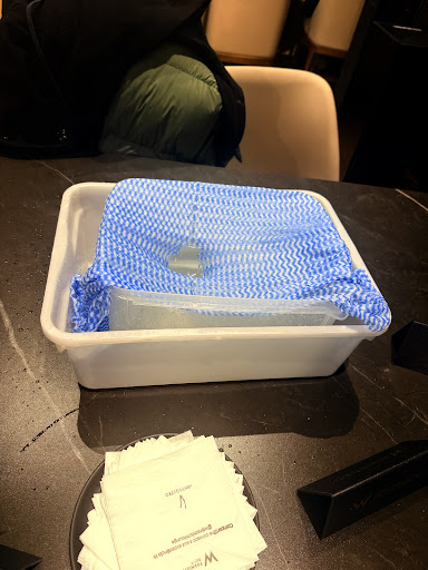If I could give zero stars I would. First we arrived at 6pm to be told no priority pass allocated until 8pm. We asked to pre book she said no. So we came back at 7.20pm to join the queue to get in at 8pm. Then, the lady on front desk who by the way went out of her way to have conversations with anyone else, ignored you, then just went out of her way going to the back of the queue to ask if anyone had American Express? She then allowed anyone with American Express in before priortiy pass. Again, nowhere did it state the times of priority pass access or that American Express were more important, they know everything is free so it makes no difference? Nothing here makes any sense The lady hosting honestly was a disgrace, to then eventually getting in at 9.45pm we were sat at this table, with a bucket in the middle full of leaking water from the ceiling. The food is terrible, pasta tasted like a shoe.